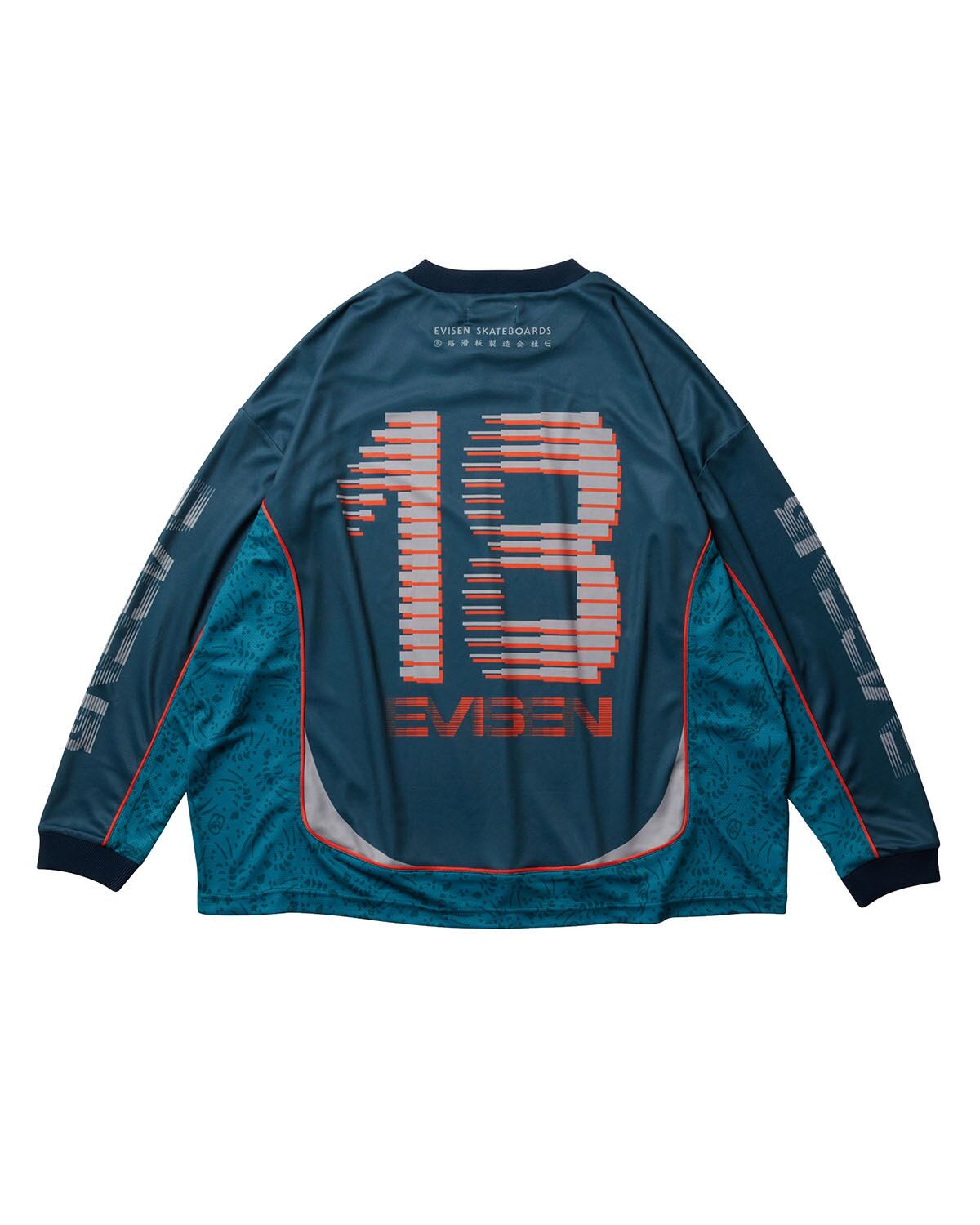 グラフィックが散りばめられたEvisenオフィシャルモトクロスジャージ。
