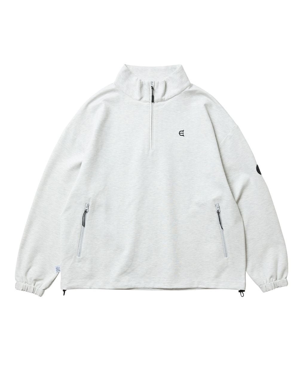 左胸にEロゴ刺繍入り。フロント腰付近にはファスナー付きのポケットを搭載。左袖にはロゴ入りのシリコンパッチ付き。