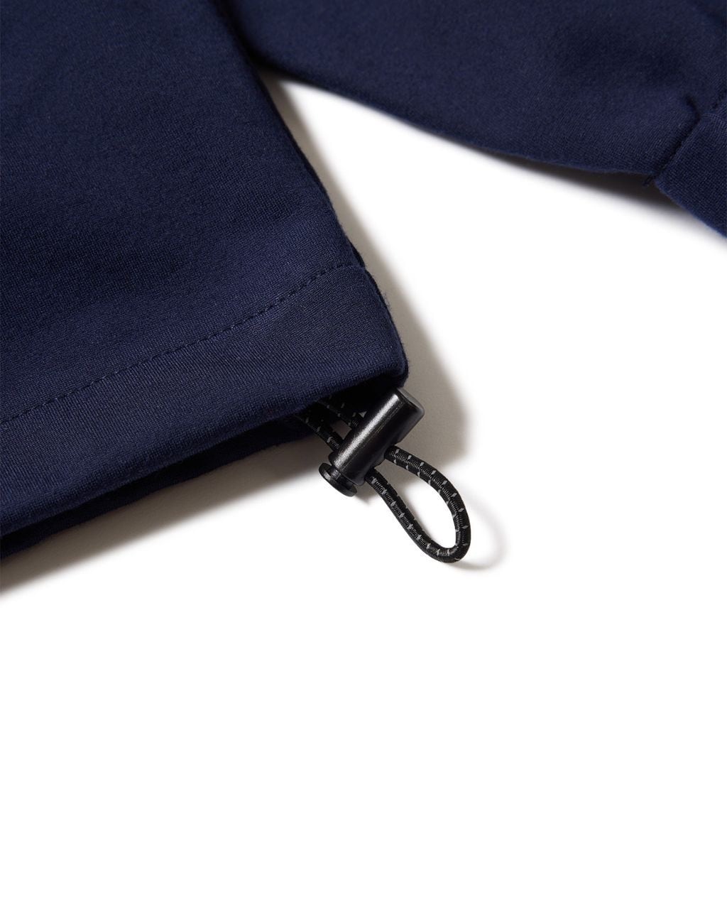 袖口はゴムシャーリング仕様で、裾はアジャスター付きドローコードでフィット感の調整が可能です。右下シームにホワイトのゑネーム付き。ゆったりとしたオリジナルのボックスシルエット。